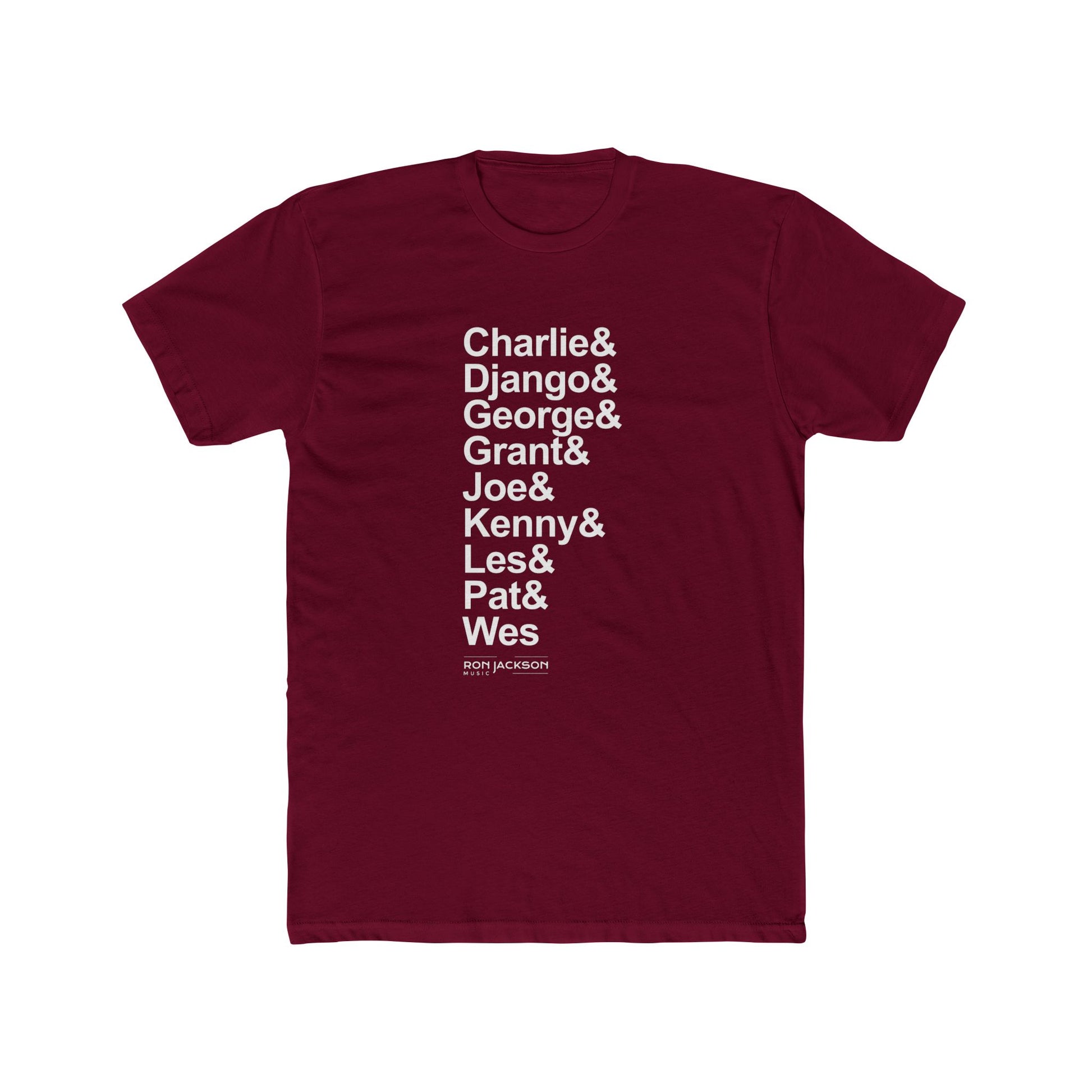 These are some of our favorite six-string guitar players: Charlie C, Django R, George B, Grant G, Joe P, Kenny B, Les P, Pat M, Pat M, Wes M. Can you guess their last names?