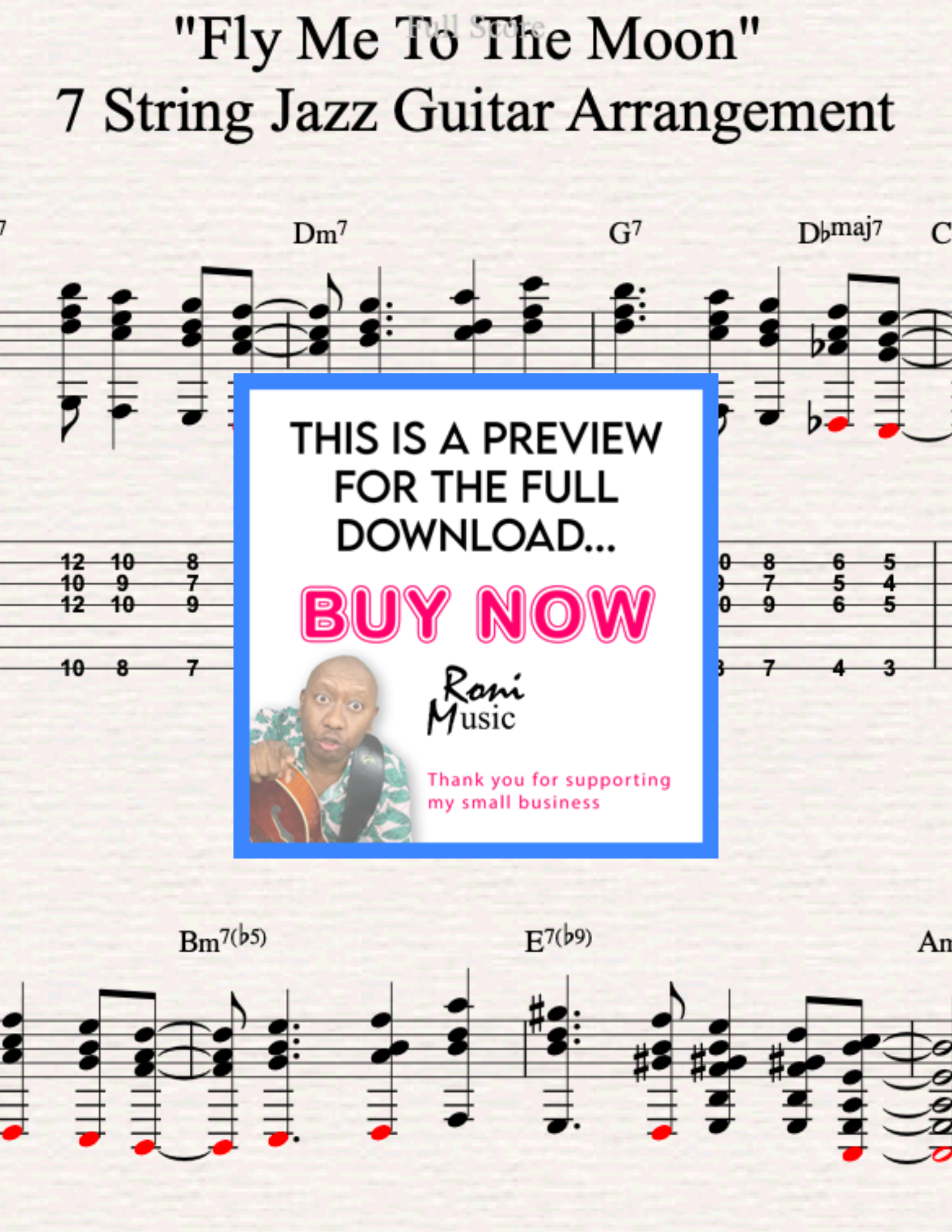 "Fly Me To The Moon" 7-String Guitar Arrangement | Frank Sinatra Classics | Sheet Music & TABS | Learn Iconic Jazz Tunes