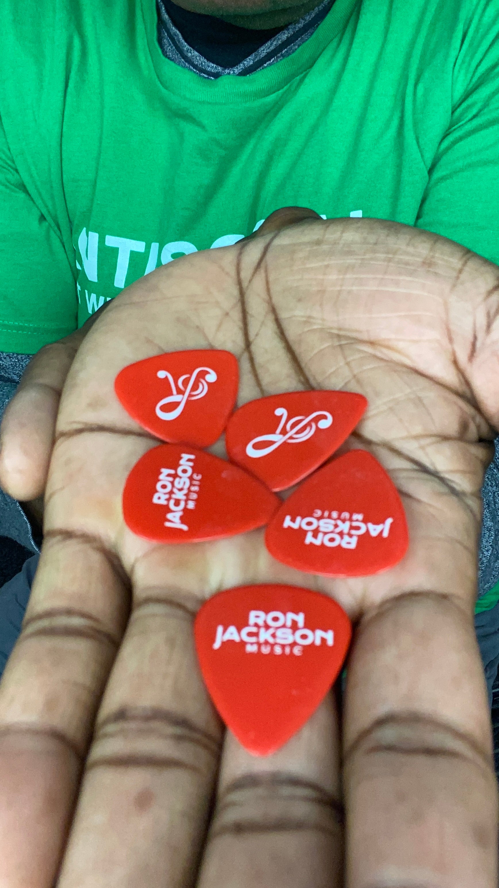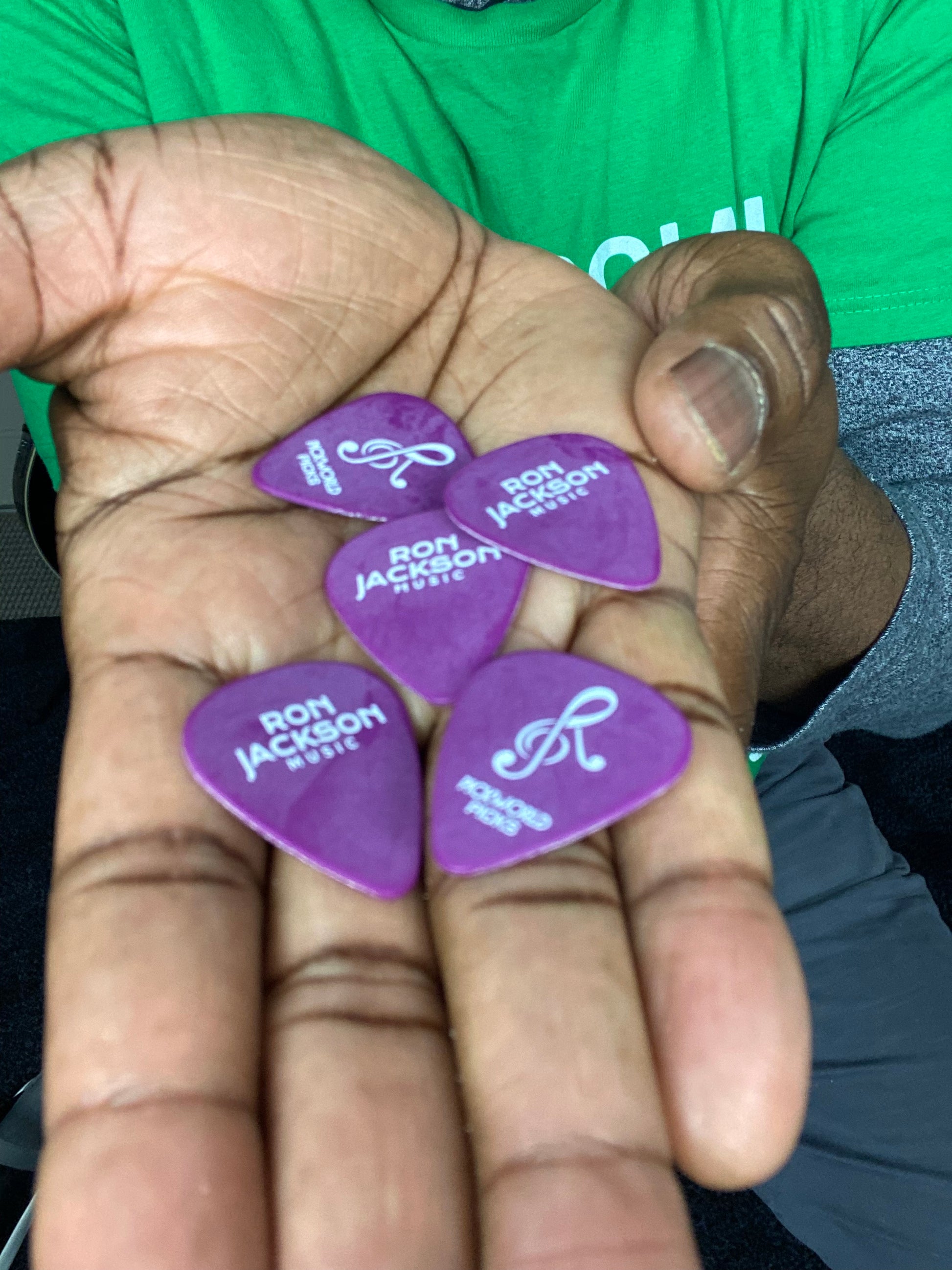 Five Ron Jackson Signature Custom Picks made by Pickworld Picks, in the USA.