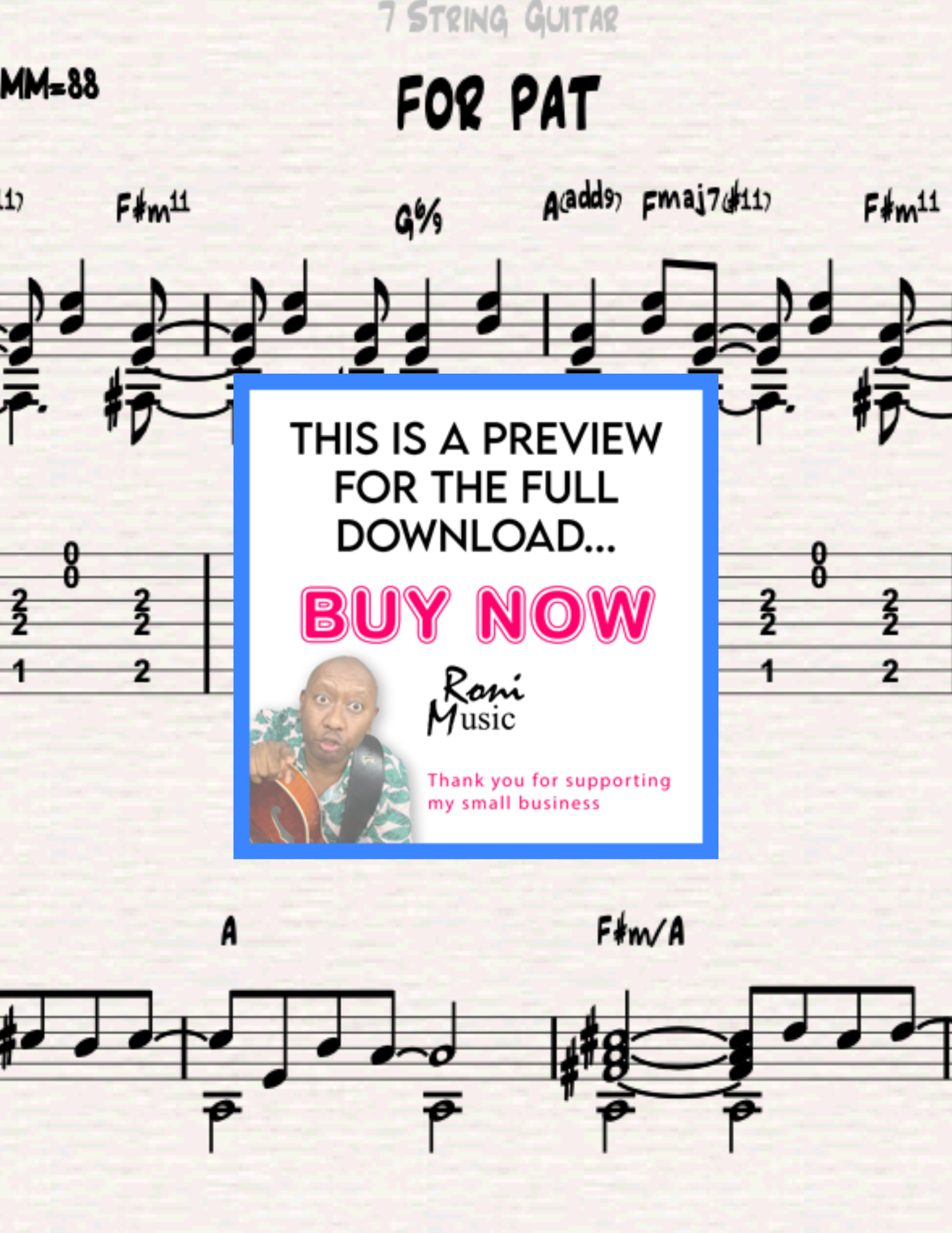 Original Jazz Composition "For Pat" - Celebrated 7-String Guitar Arrangement | Jazz Sheet Music, TABs, MIDI & MP3 | Top 10 JazzWeek Radio Hit