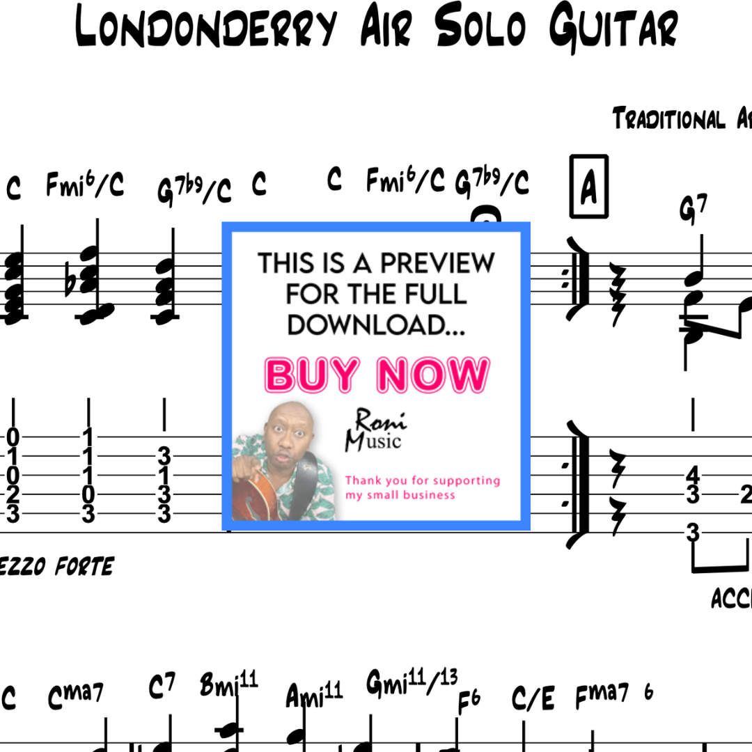 "Londonderry Air" ("Danny Boy") – Jazz Guitar Arrangement | 6-String Chord Melody | Sheet Music + TABs + Video + MIDI + mp3 Audio