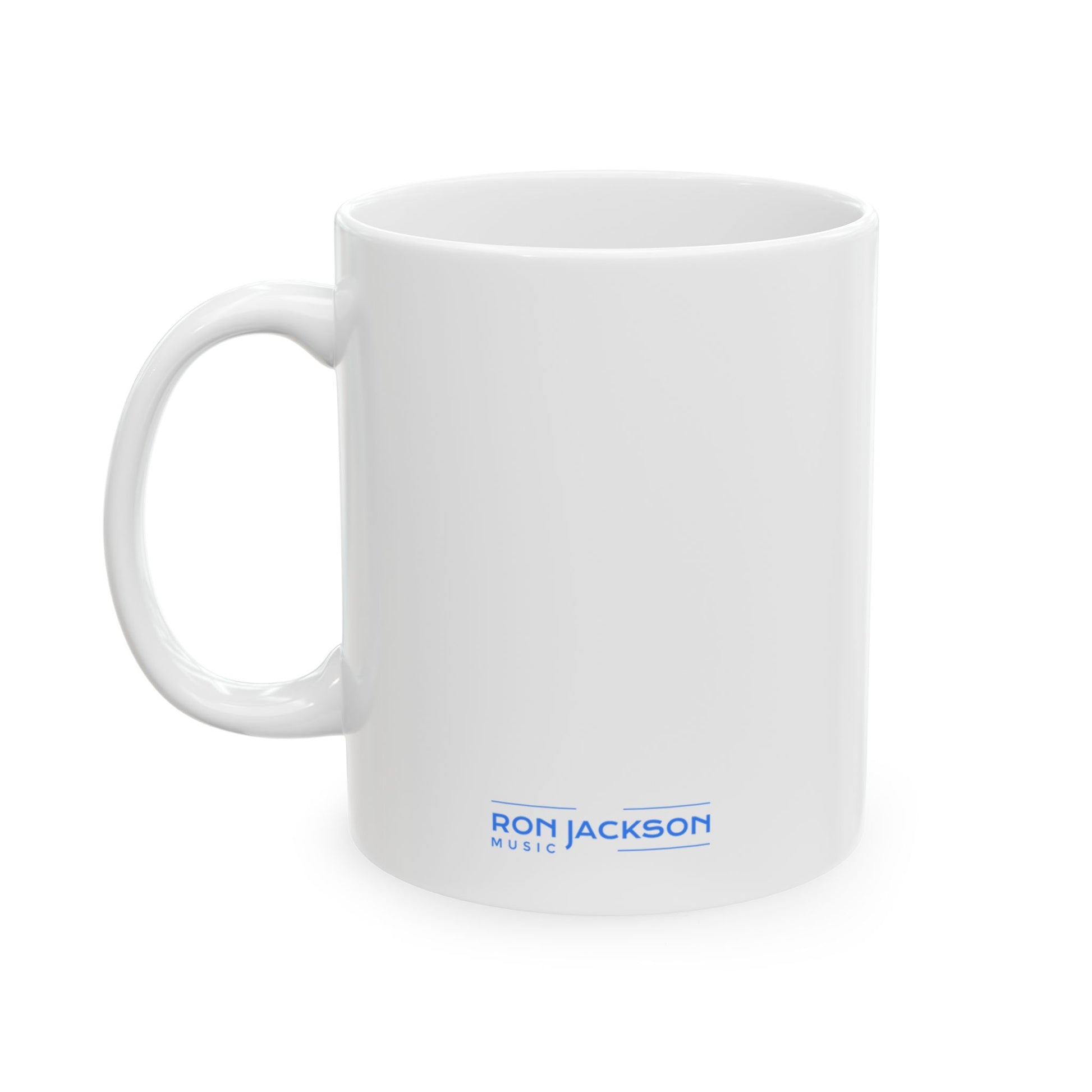 This mug is the best! It's got cute Ron Jackson reminding us to practice guitar!