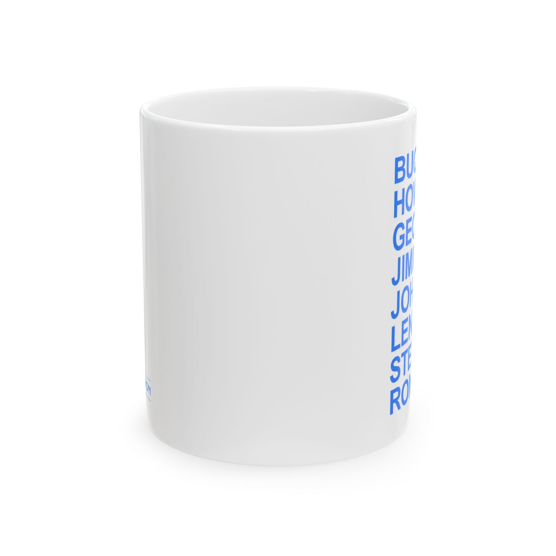 11-ounce ceramic coffee mug with the best 7 String Jazz Guitarists. The coffee mug that pays homage to some of the best seven-string jazz guitarists.