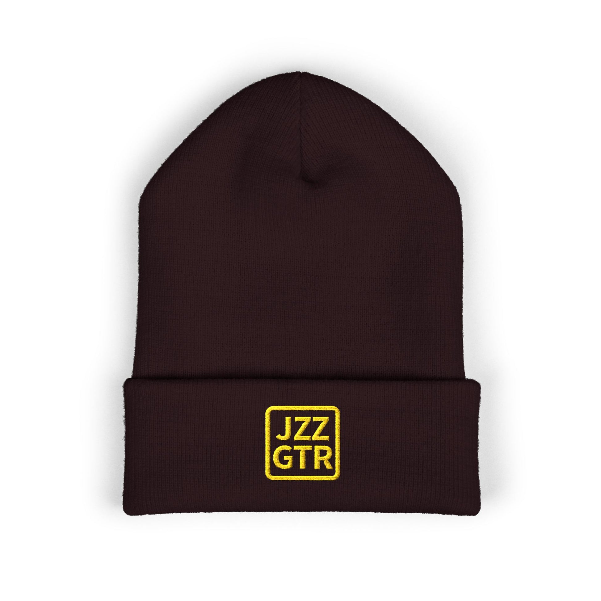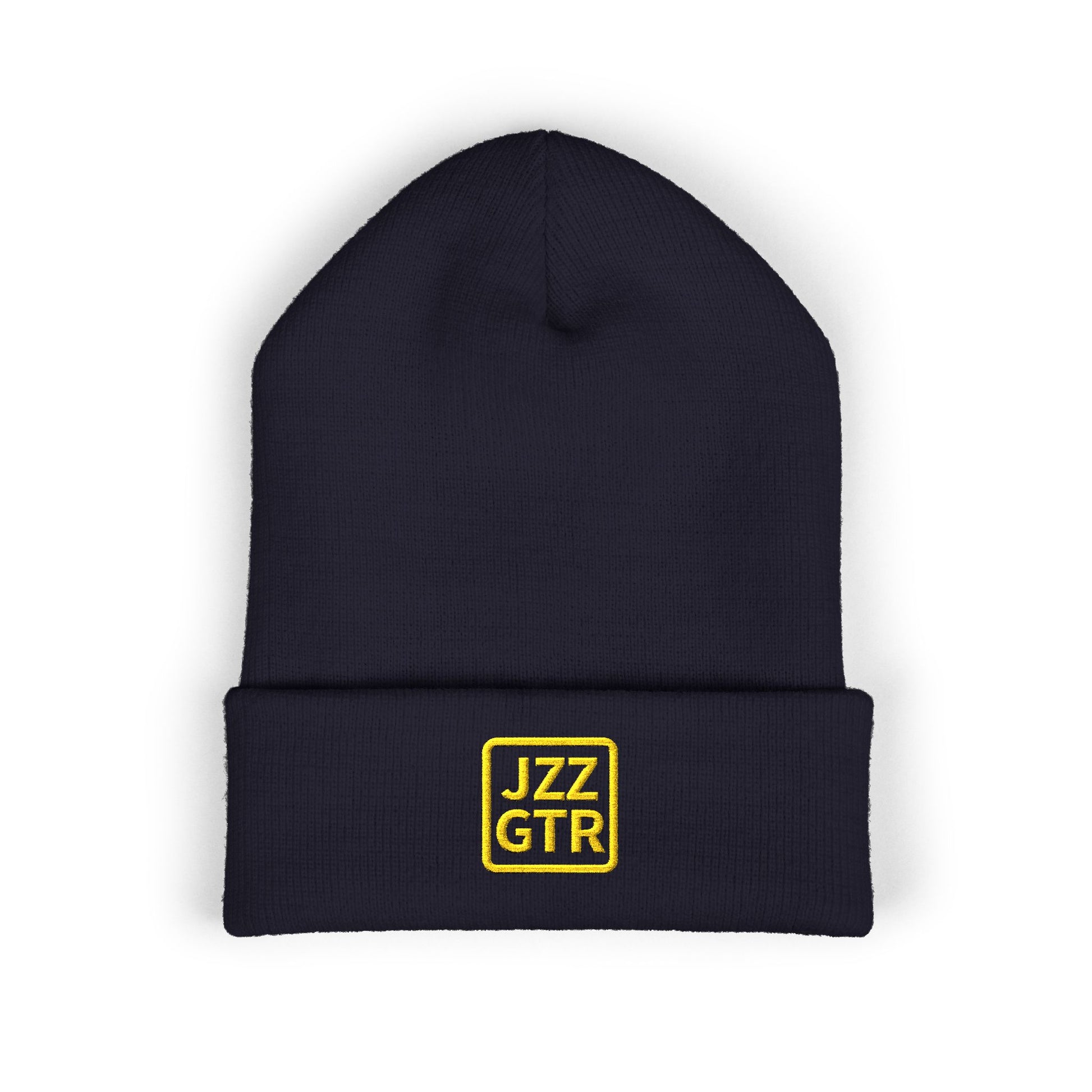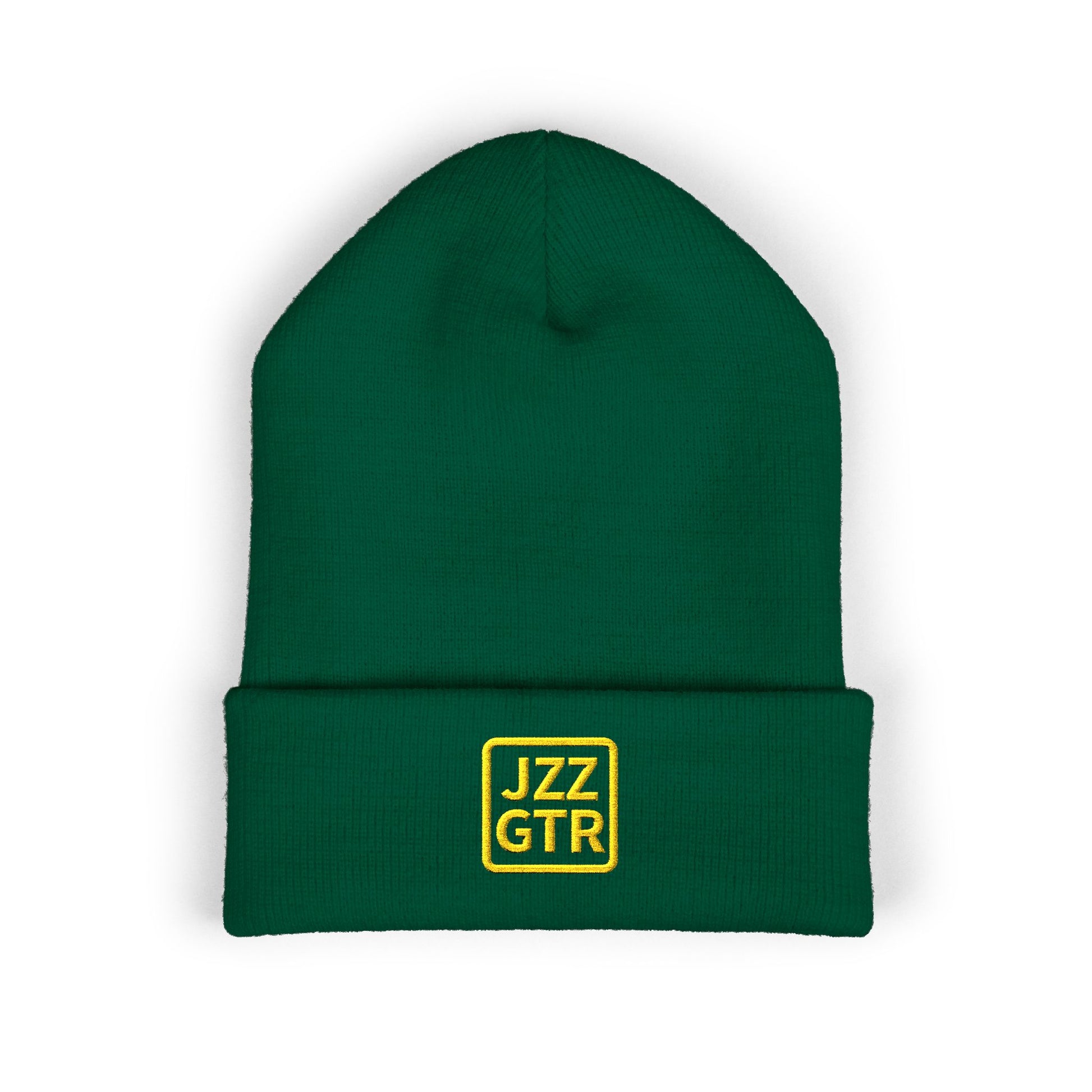 Yellow Embroidered JZZ GTR® Beanie Hat | Bold Winter Knit Hat for Jazz Guitar Fans | Vibrant Cuffed Beanie for Musicians